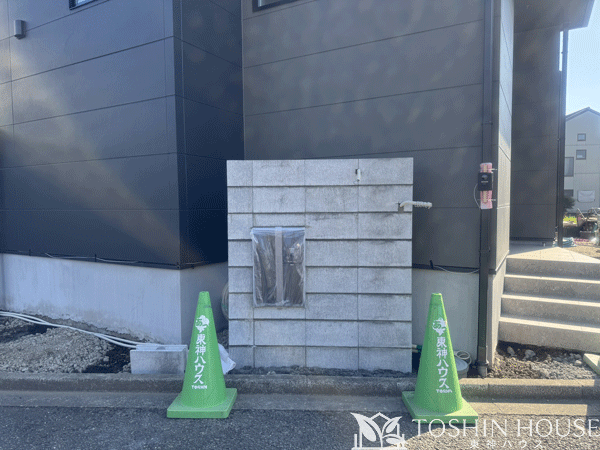 こちらの道路境界には門柱とサイクルポートを立てていきます。