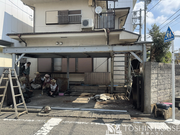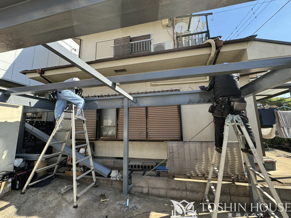 新しい鉄骨下地を組み終わったら完全なカーポートに改良するため、
