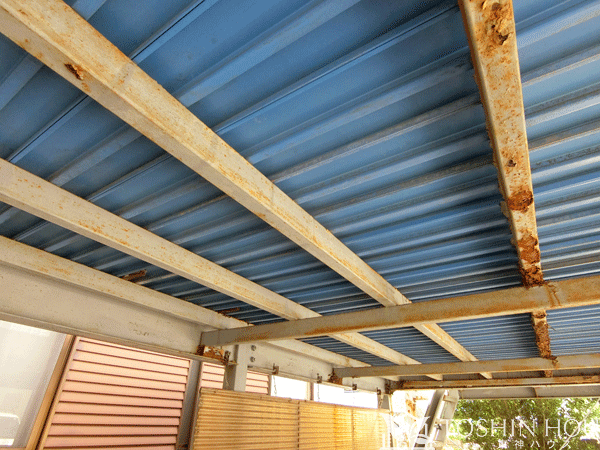 錆びていた鉄骨も折半屋根仕様の鉄骨に取替え。