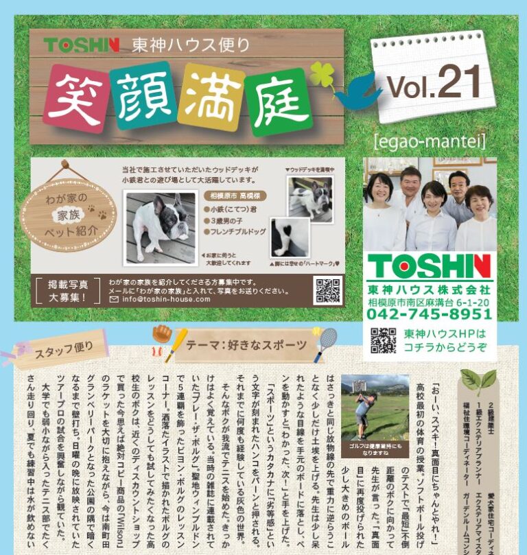 相模原市の外構・エクステリア専門店 東神ハウス株式会社のニューズレター 「笑顔満庭 vol.26」